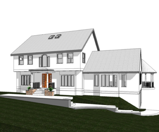 A new kitchen, home office, rear attic dormer and new front porch were studied for this project.